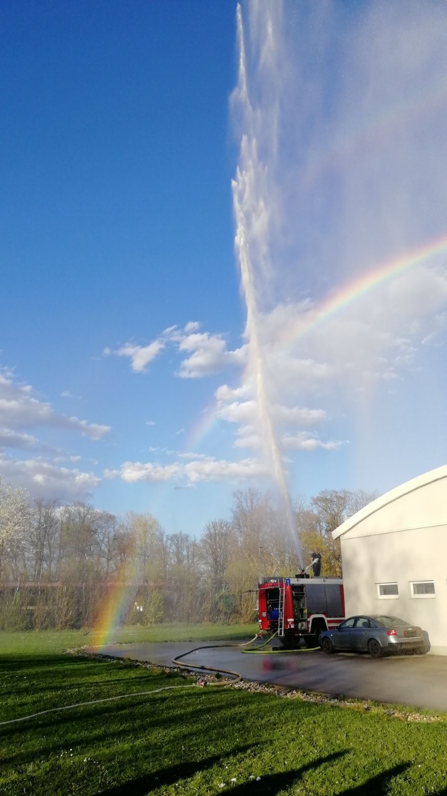 Nach einem beherzten „Wasser Marsch“ an unseren Maschinisten ZGTr.-Kdt. EOBM Franz Mahrer, startete dieser die Pumpen des RLF und nachdem der richtige Druck am Mittelschaumrohr erreicht werden konnte startete die praktische Ausbildung Schaum.