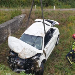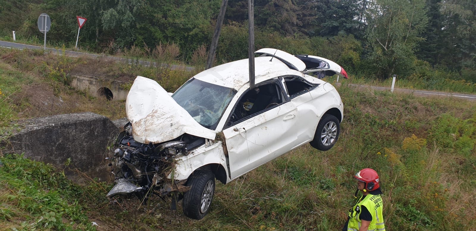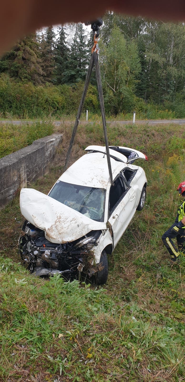 Bei der Anfahrt wurde uns von der Polizei mitgeteilt, dass der PKW am Dach liegt und noch eine Person im Fahrzeug eingeschlossen ist.