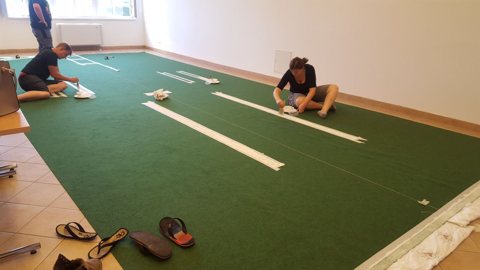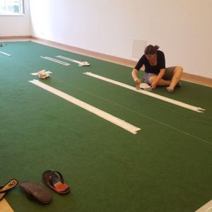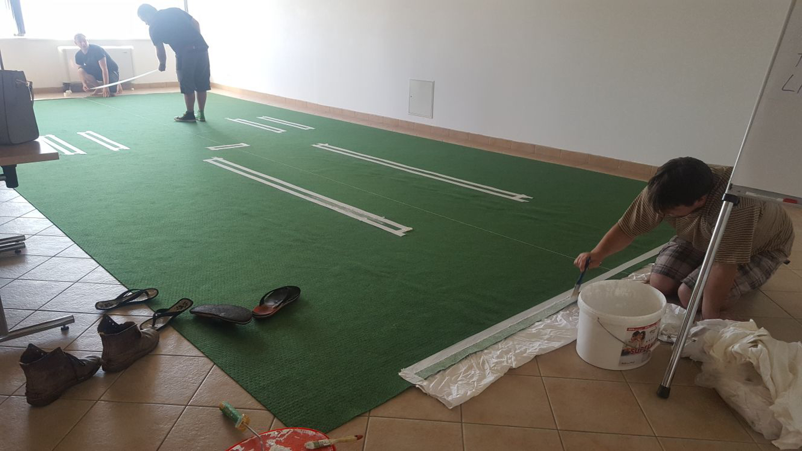 Die Vorbereitungen für unseren heurigen Kuppelcup laufen bereits auf Hochtouren. Derzeit kümmert sich unser Team darum einen neuen Teppich auszumessen und zu bemalen.